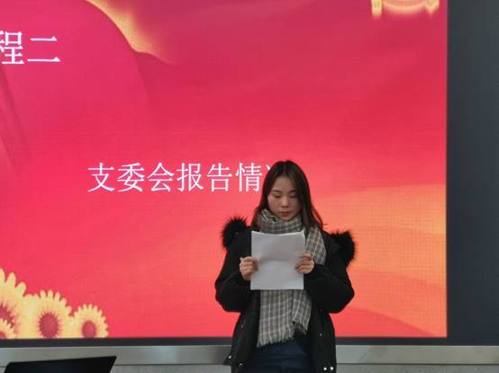 学生党支部工作人员汪玉梅进行对胡涛、赵升等62名发展对象报告情况