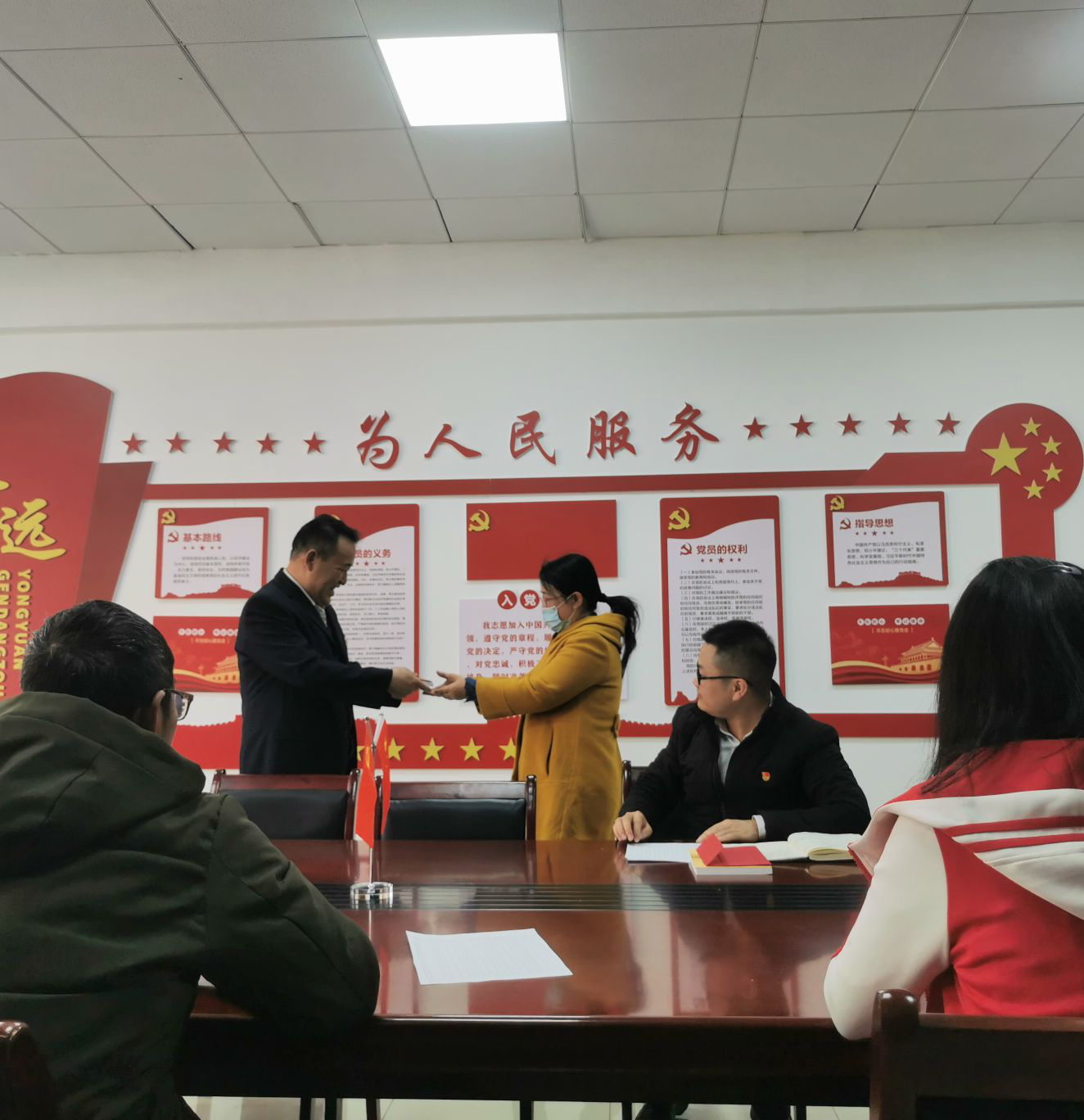 会议期间,吴亚平同志代表教师党支部委员会向本季度过政治生日的3位党员同志发放了生日贺卡和礼物,希望他们牢记党的使命,不断加强学习,努力拼搏,为支部和学院的十四五征程再添新功。罗光杰同志强调:党员过“政治生日”,是强化党员政治身份认同的一个重要方式。共产党员是一个特殊的政治身份,入党是一个人从一个普通群众上升到先锋队成员的标志。加入了党组织,就意味着政治生命的开始。过好“政治生日”,就是要求每一个党员始终牢记自己的先锋队员的政治身份,始终保持一种政治生命的体验,始终保持一种组织归属感和身份荣誉感,始终在理论上和实践上具有超出普通群众的先进性,始终保持组织上的高度的纯洁和高度的忠诚。这种来自党员自身的思想认同,能够产生强大的行为自律力量。